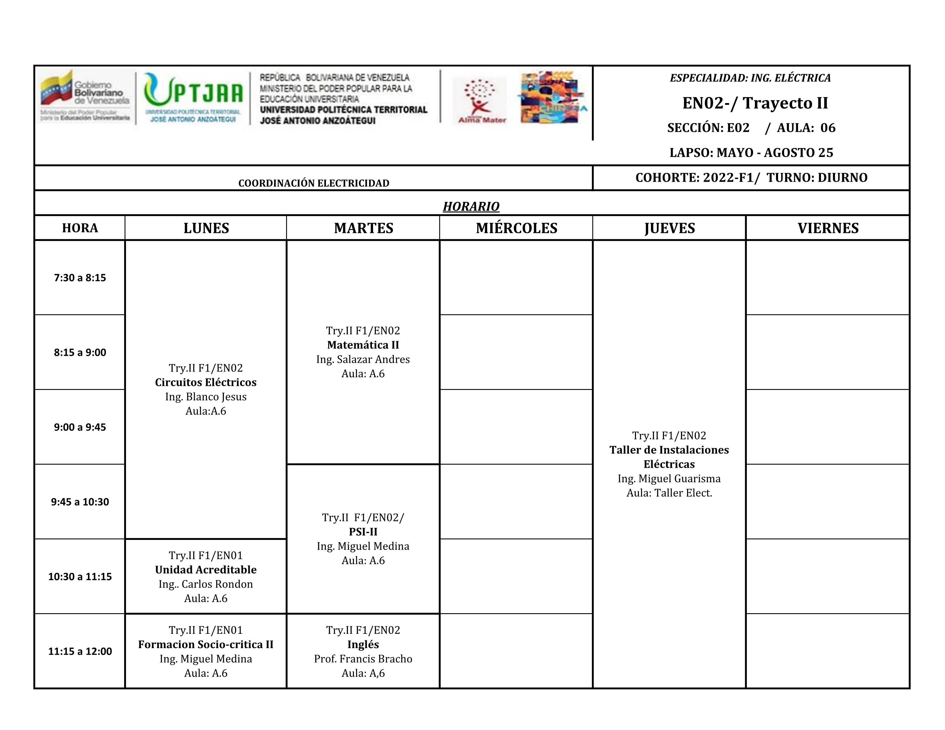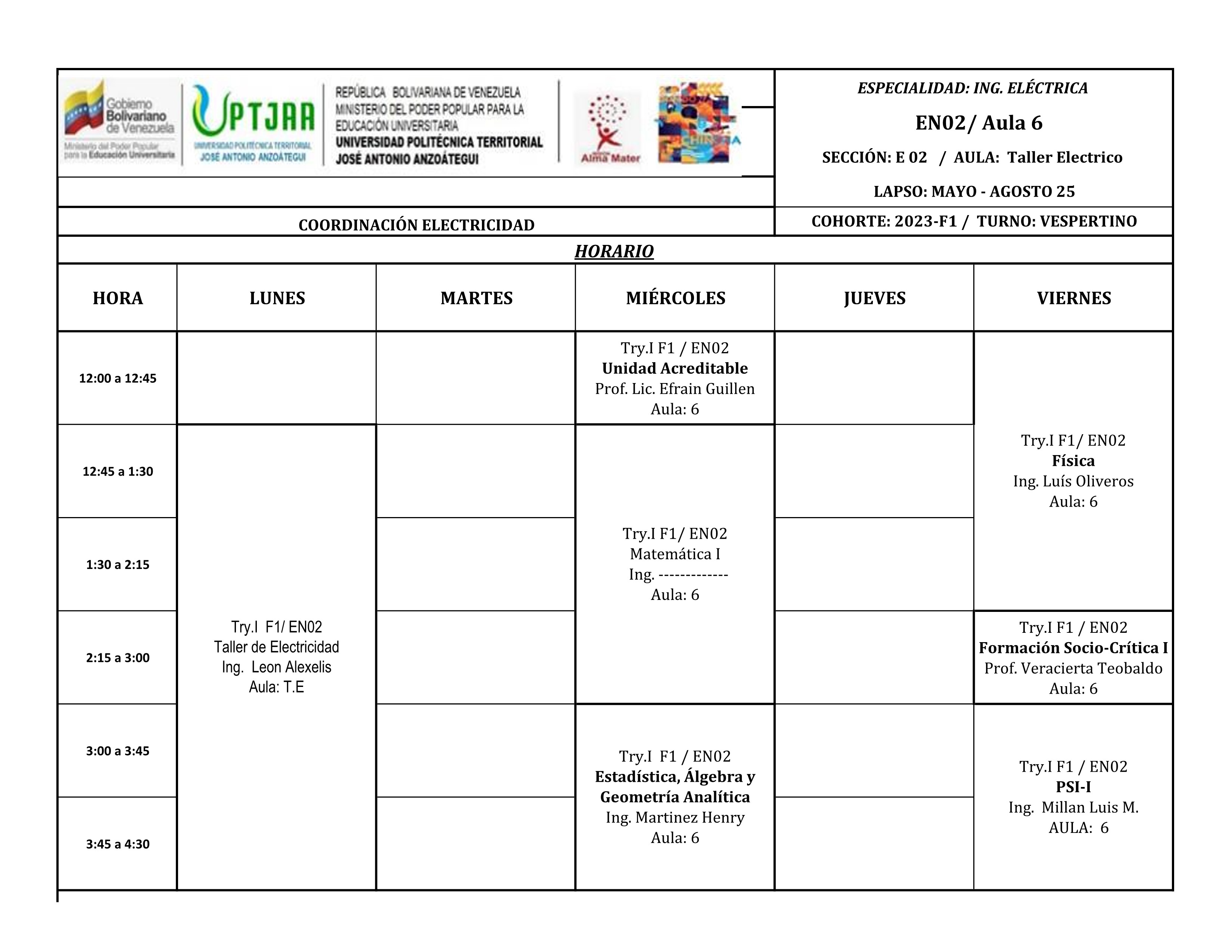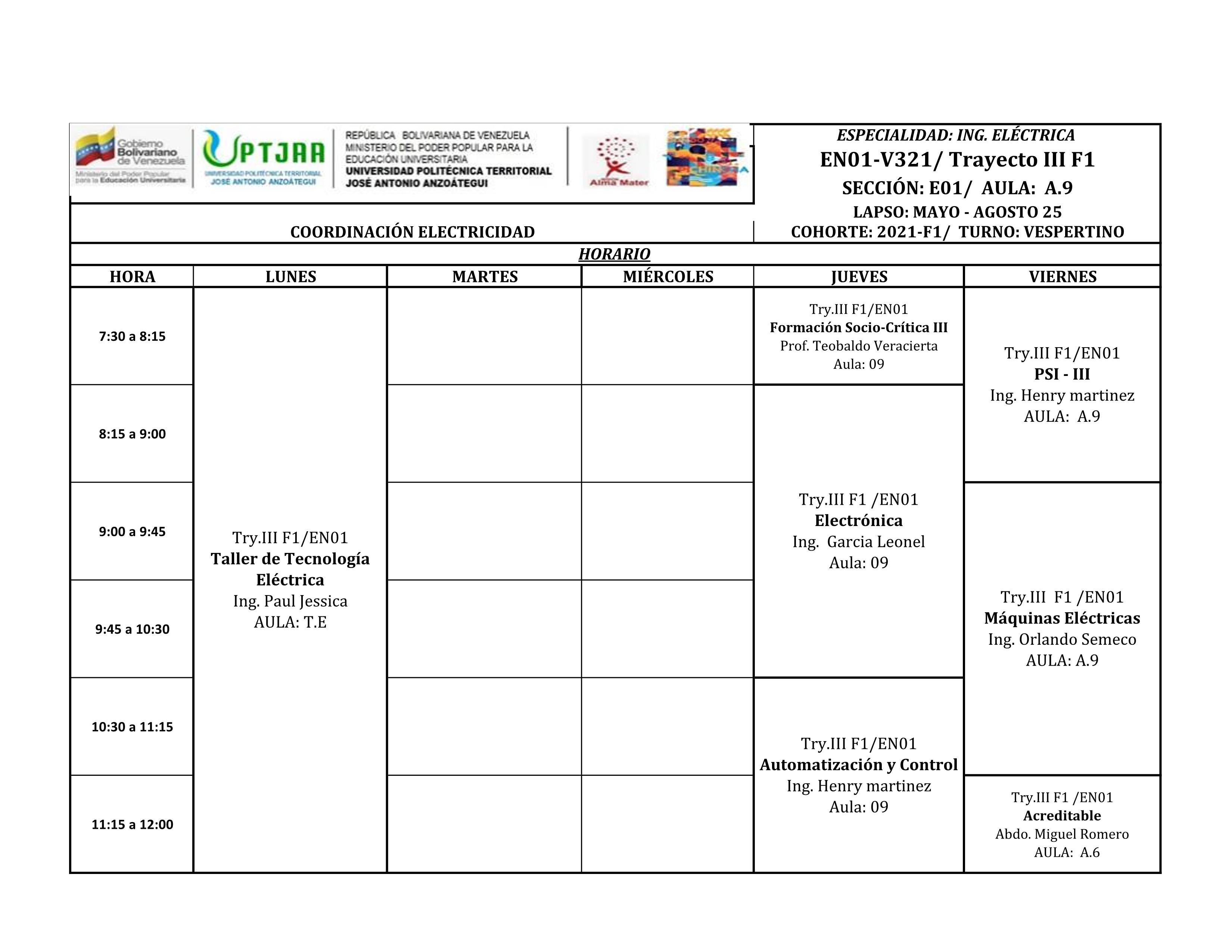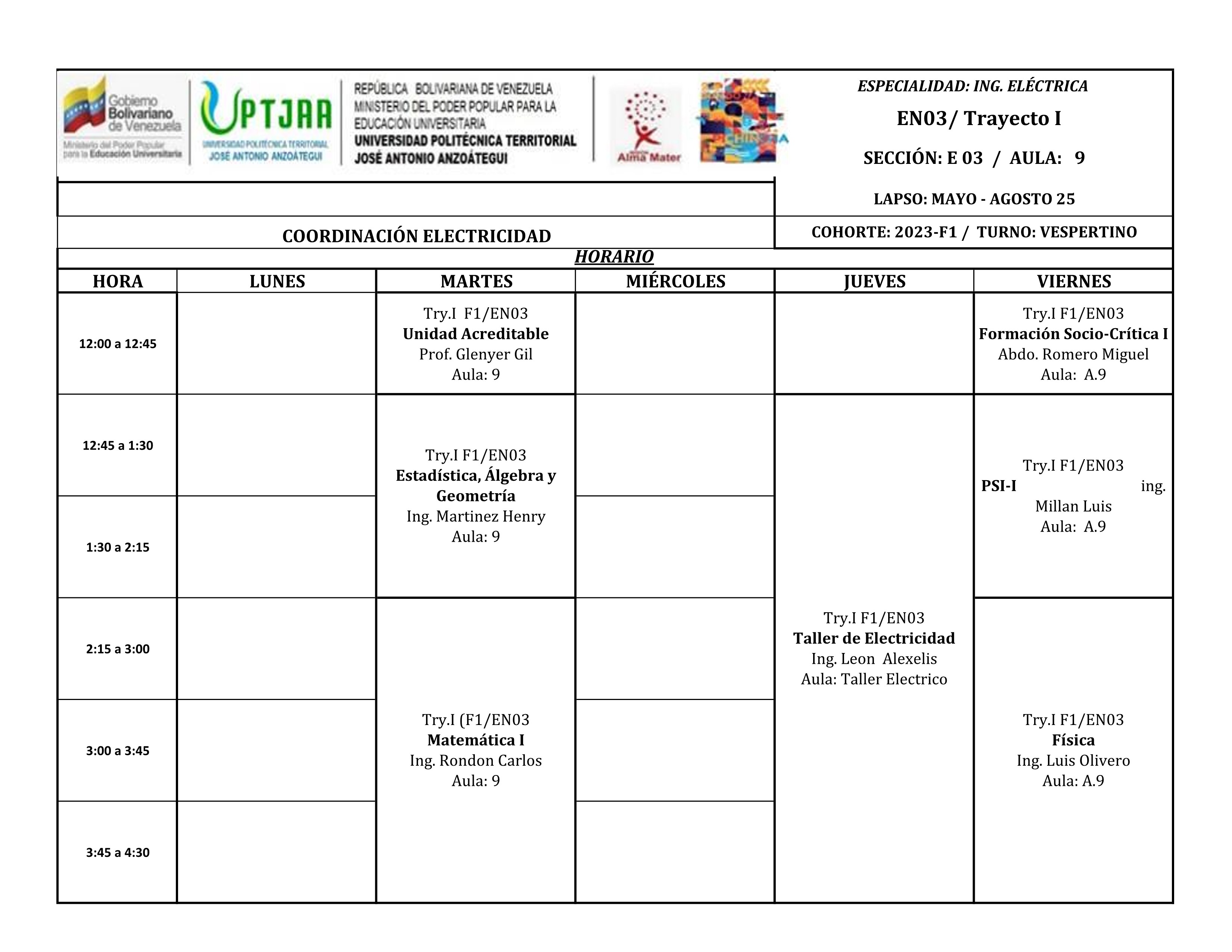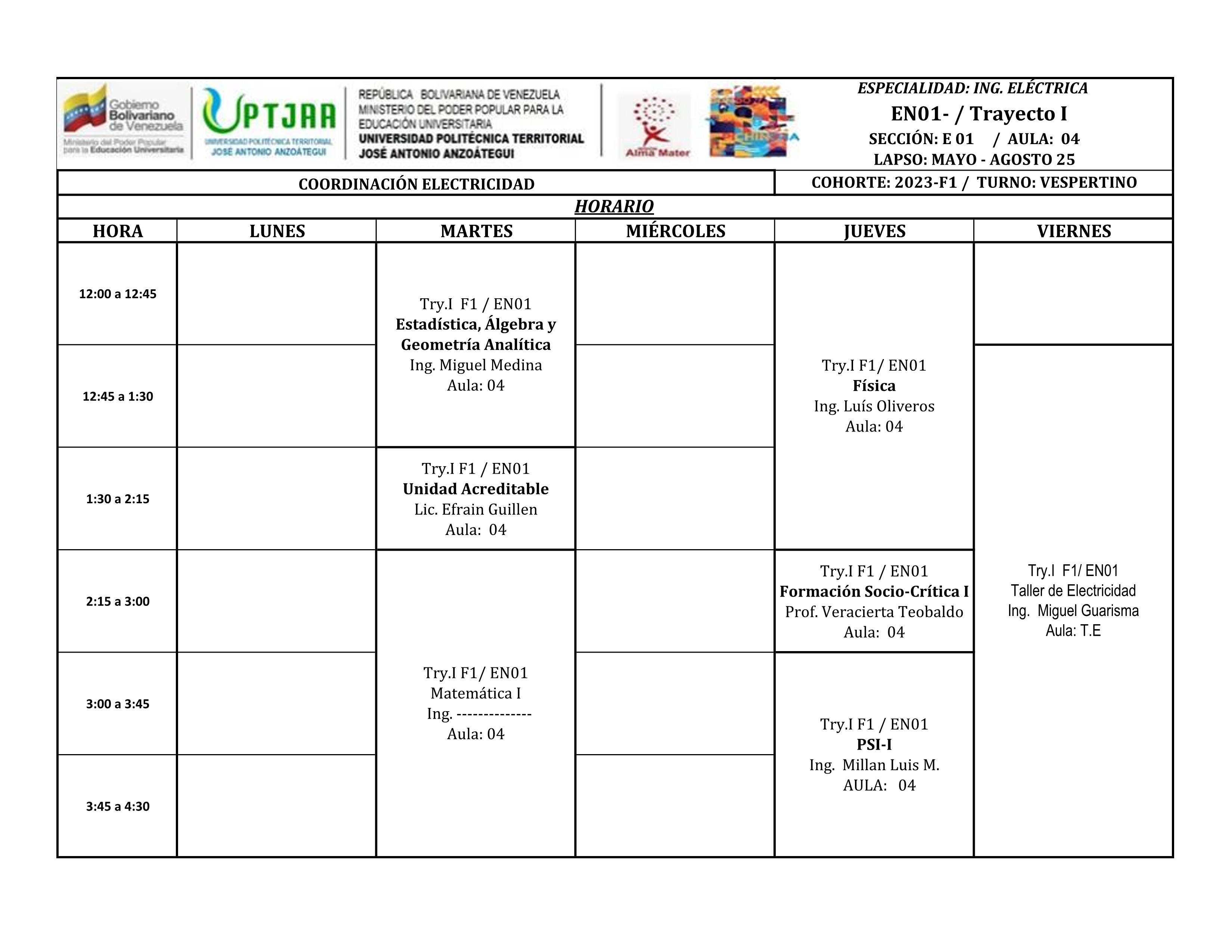 Bienvenidos a este nuevo semestre, el cual consta de 13 semanas de clases, iniciando el 12 de mayo de 2025 y culmina la primera de semana de agosto de 2025 para los estudiantes de trayecto regular.