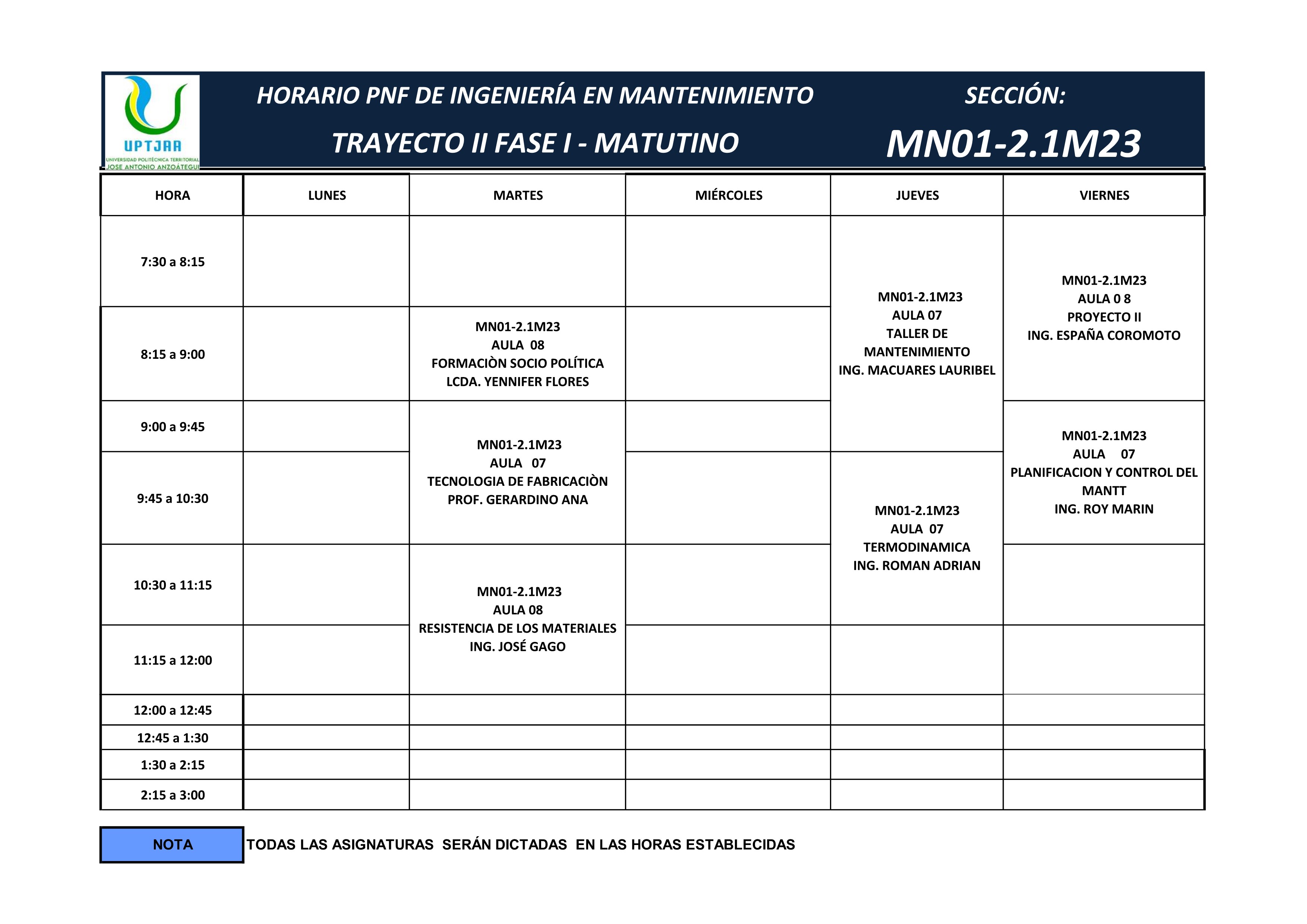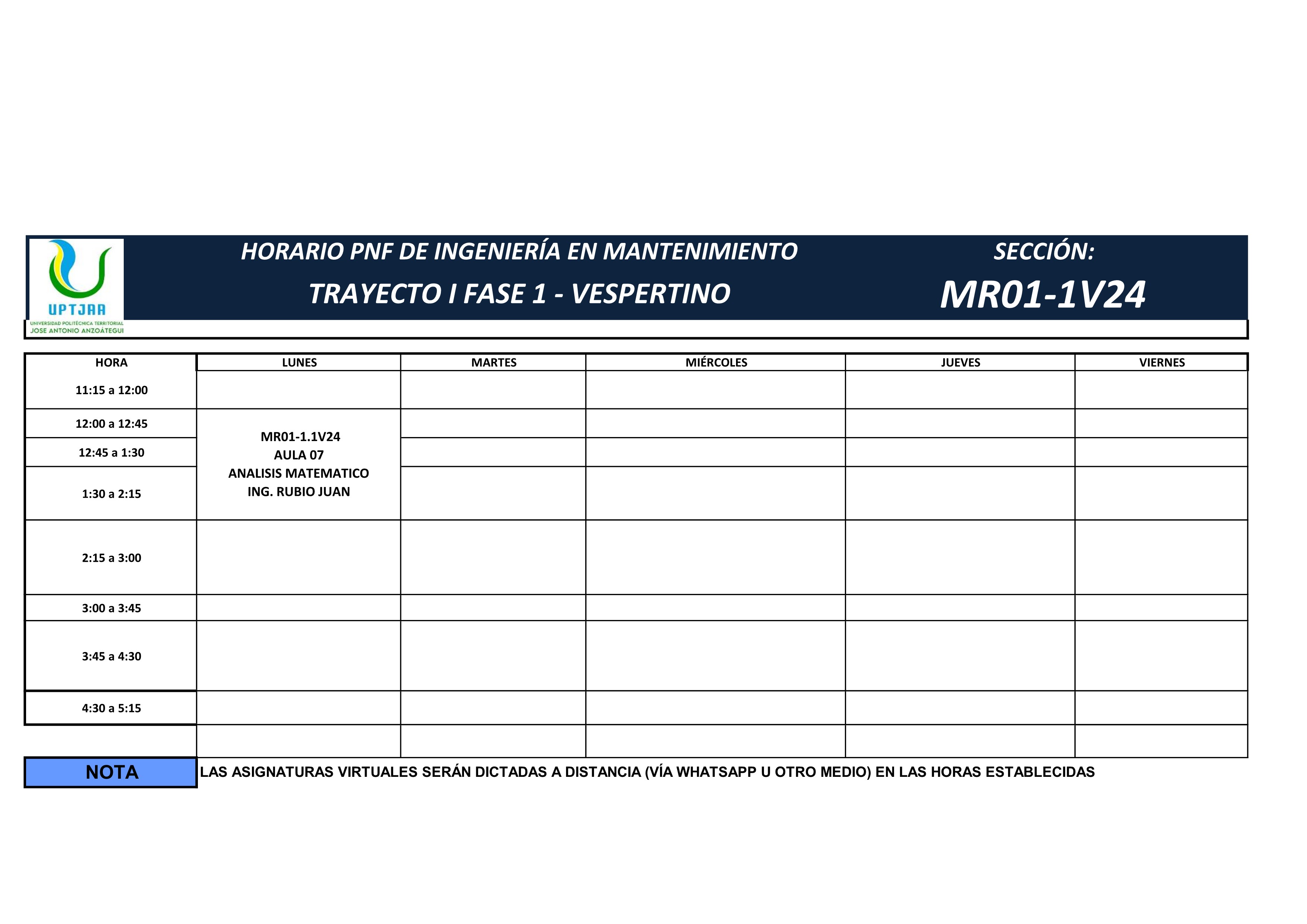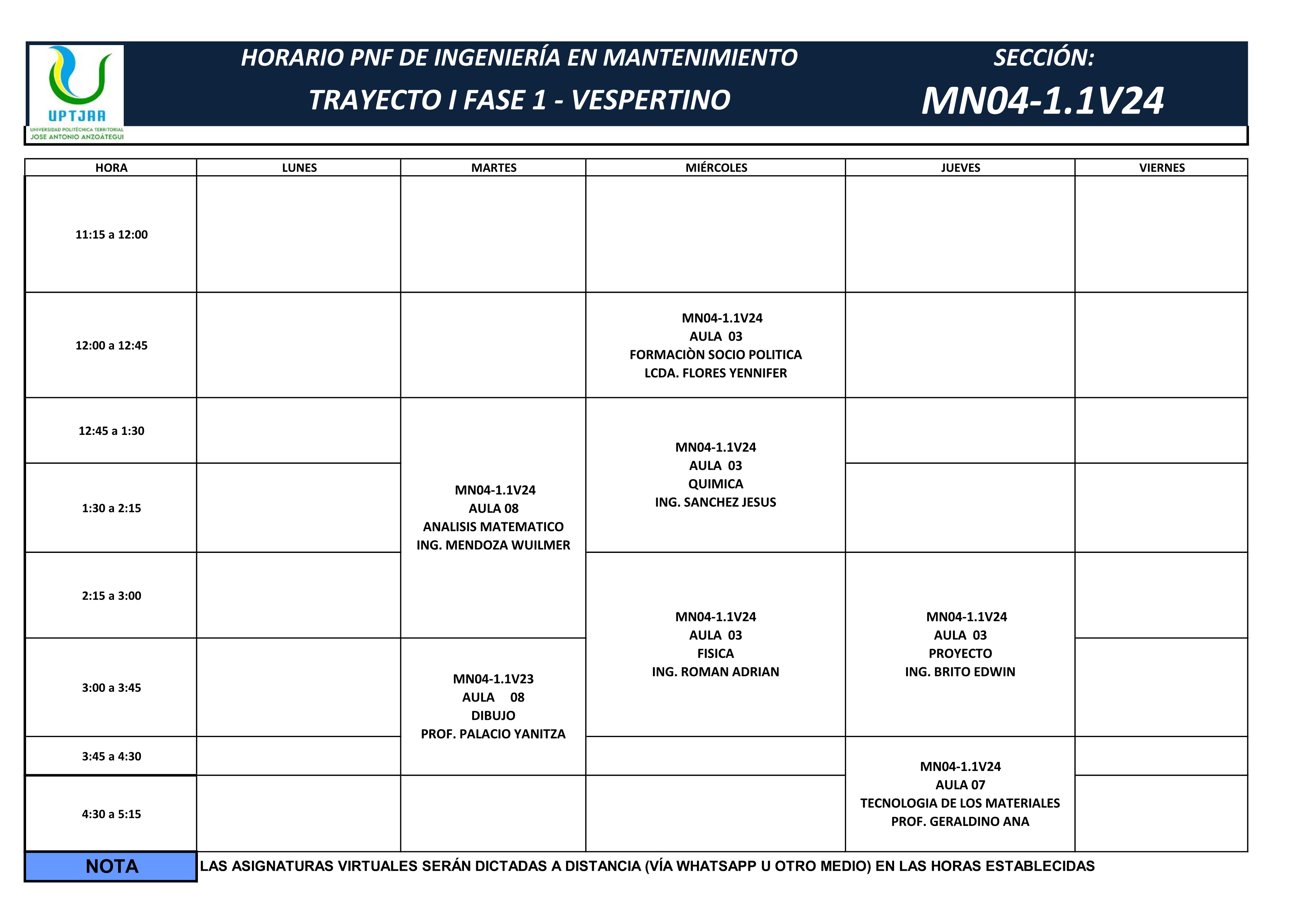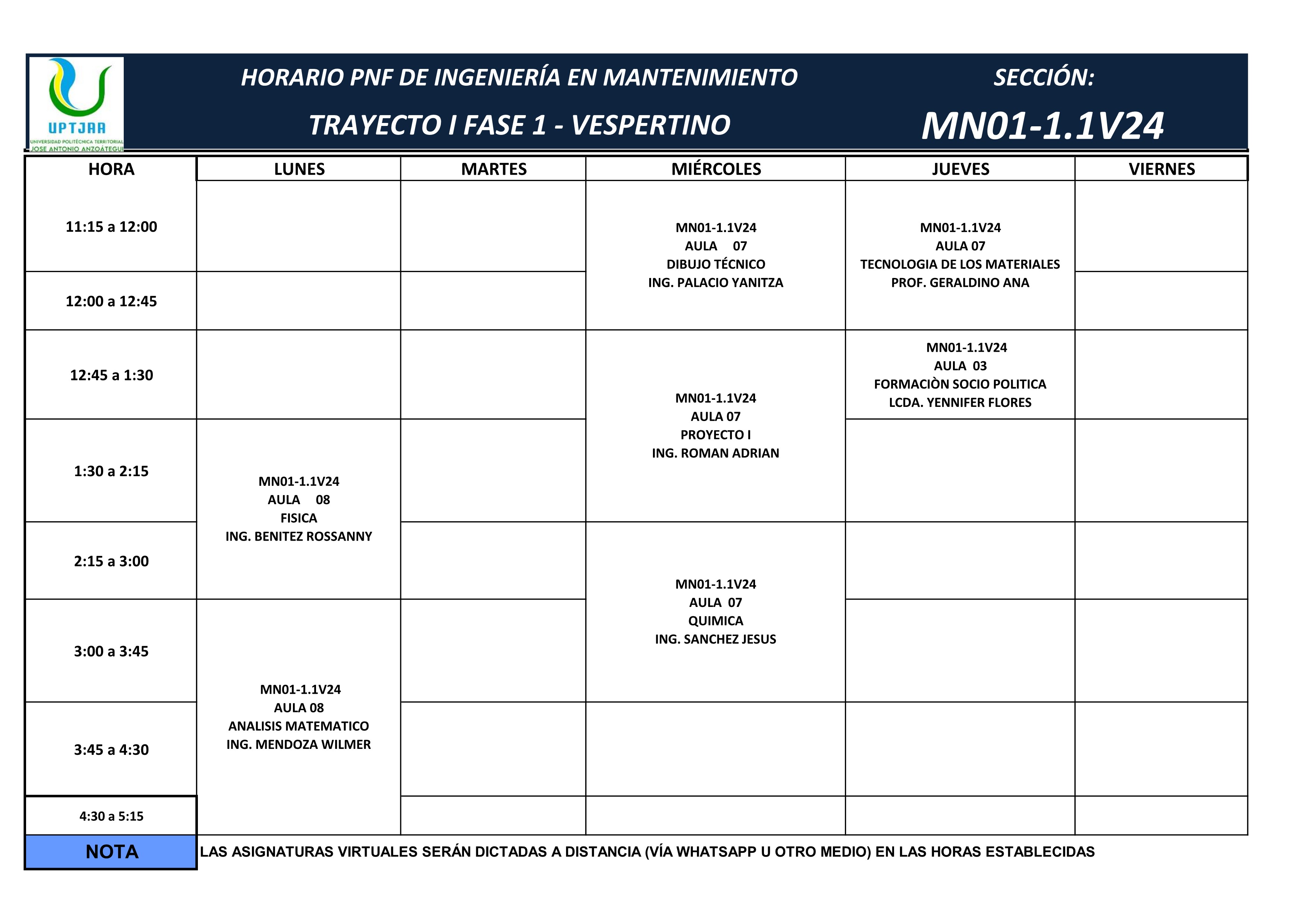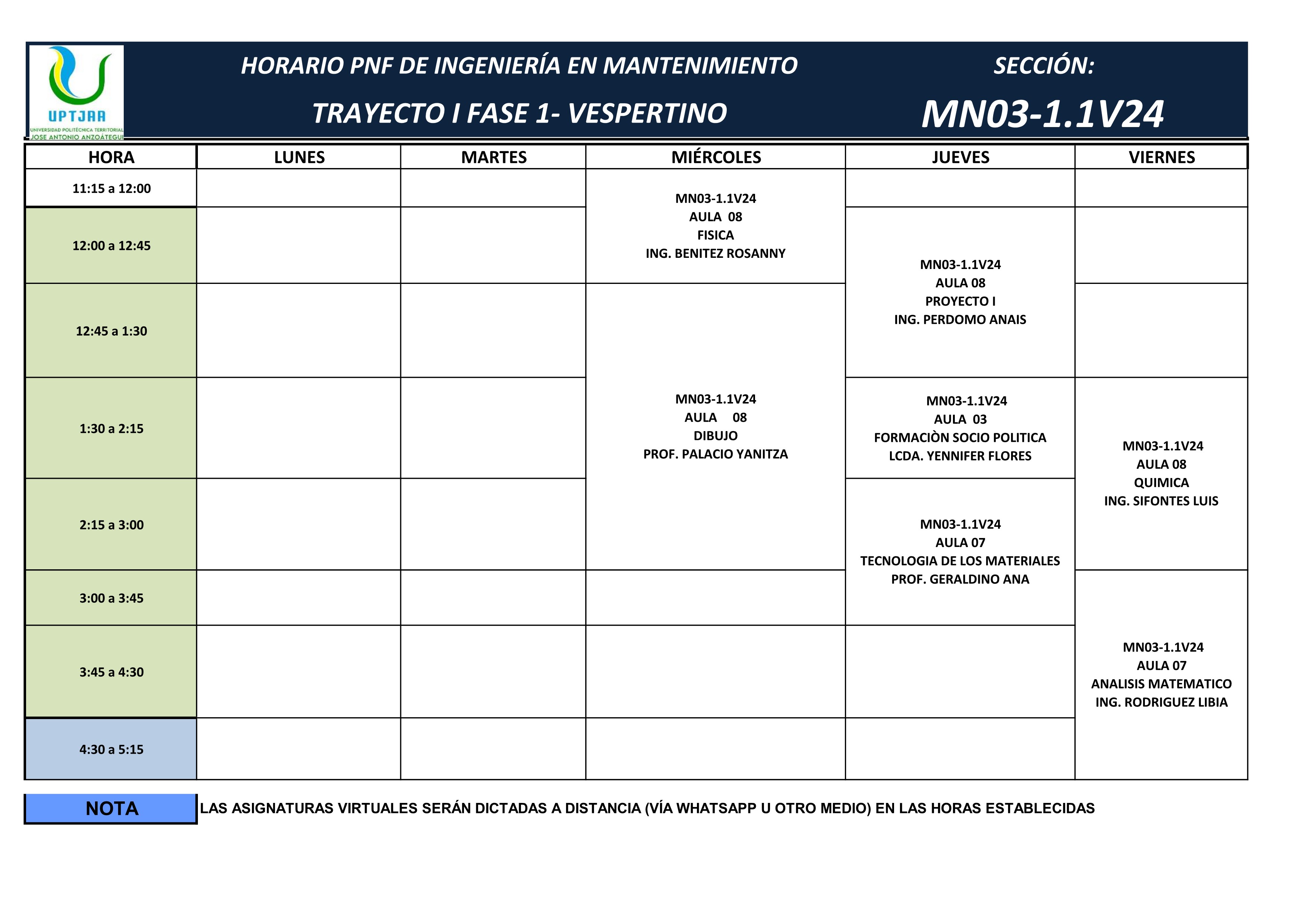 Bienvenidos a este nuevo semestre, el cual consta de 13 semanas de clases, iniciando el 12 de mayo de 2025 y culmina la primera de semana de agosto de 2025 para los estudiantes de trayecto regular.
