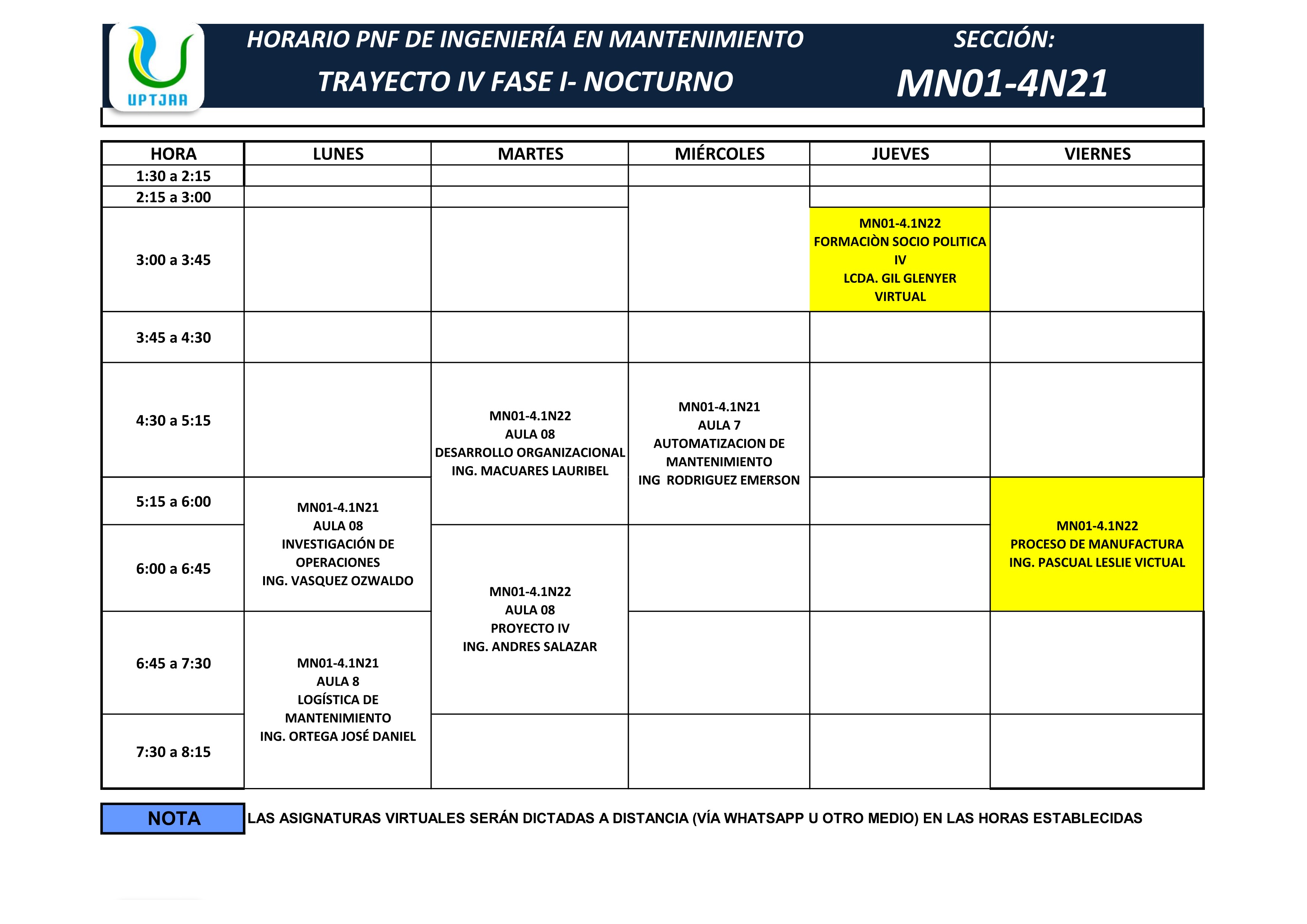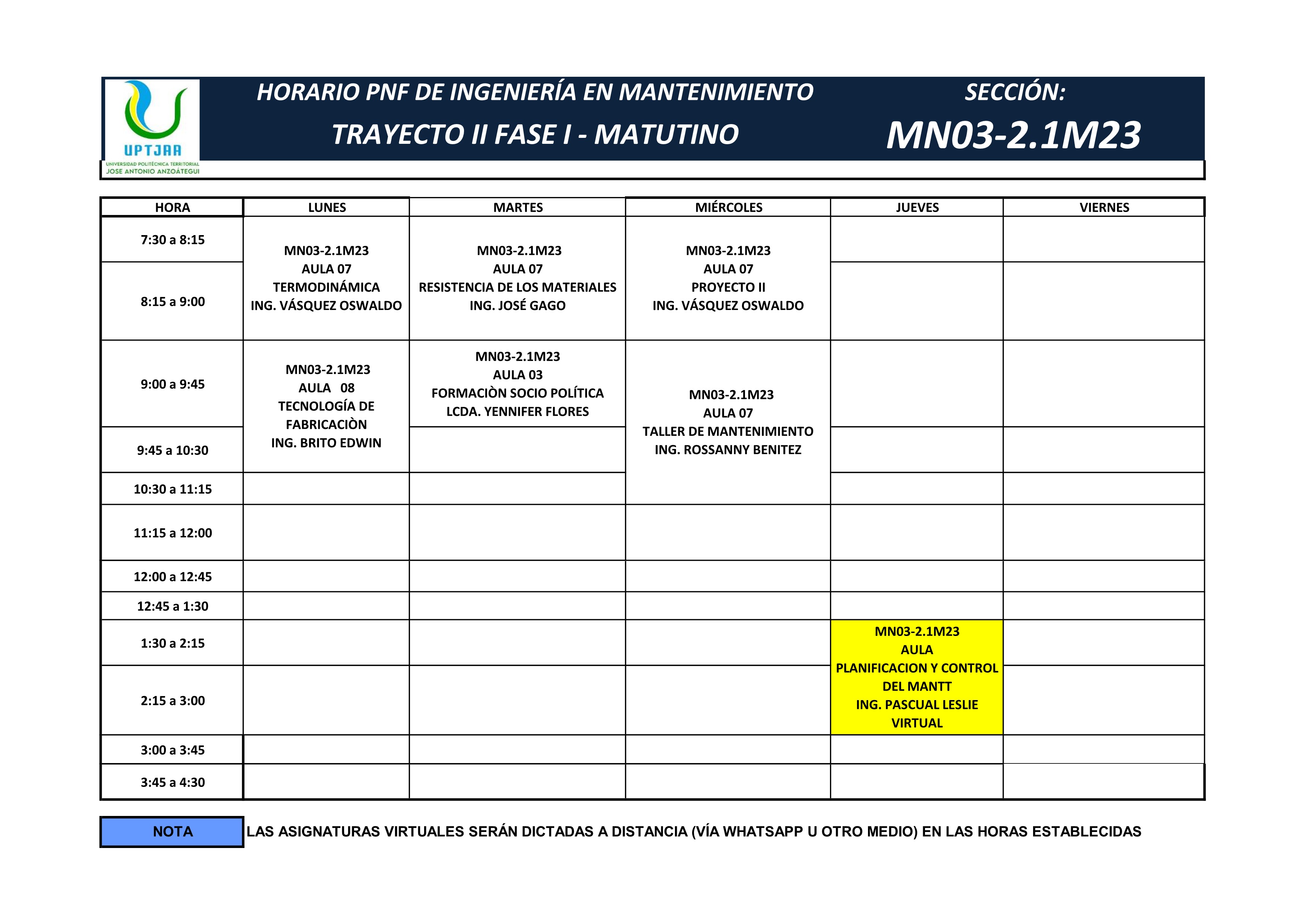 Durante esta fase las instalaciones de la universidad, laboraran de lunes a viernes de 7:30 am. Hasta las 8:15 pm. Dentro de ese lapso se realizarán las clases presenciales.